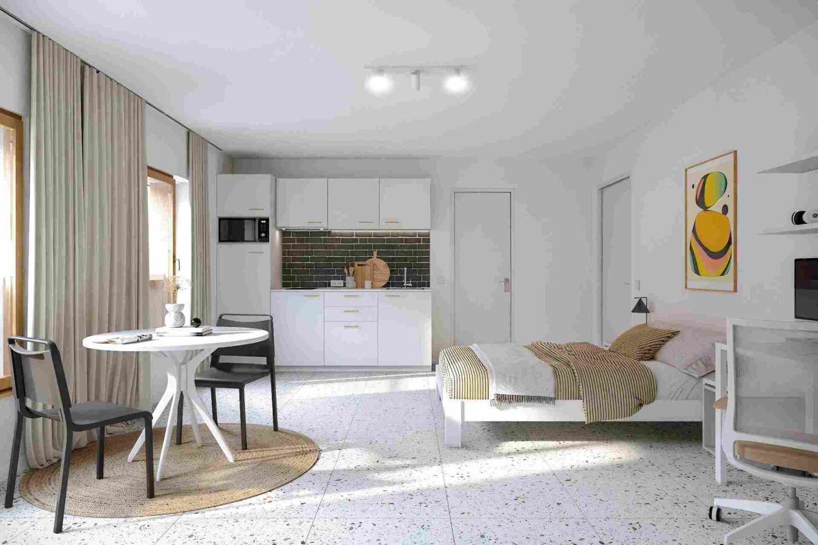 Kamers, studio’s en keukens worden volledig instapklaar opgeleverd: bemeubeld, geschilderd en afgewerkt met verduisterende, brandvertragende gordijnen. Het gebouw wordt uitgerust met energiezuinige technieken zoals lucht-water warmtepompen, ventilatiesysteem D, vloerverwarming en zonnepanelen voor de studio’s.