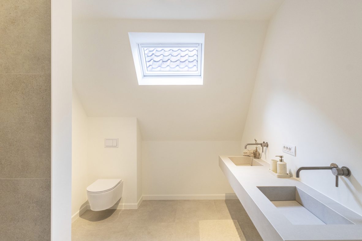 – Moderne badkamer met inloopdouche, dubbele wastafel en toilet