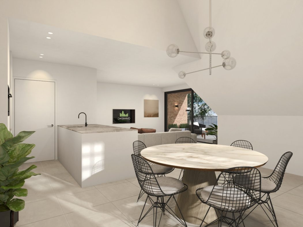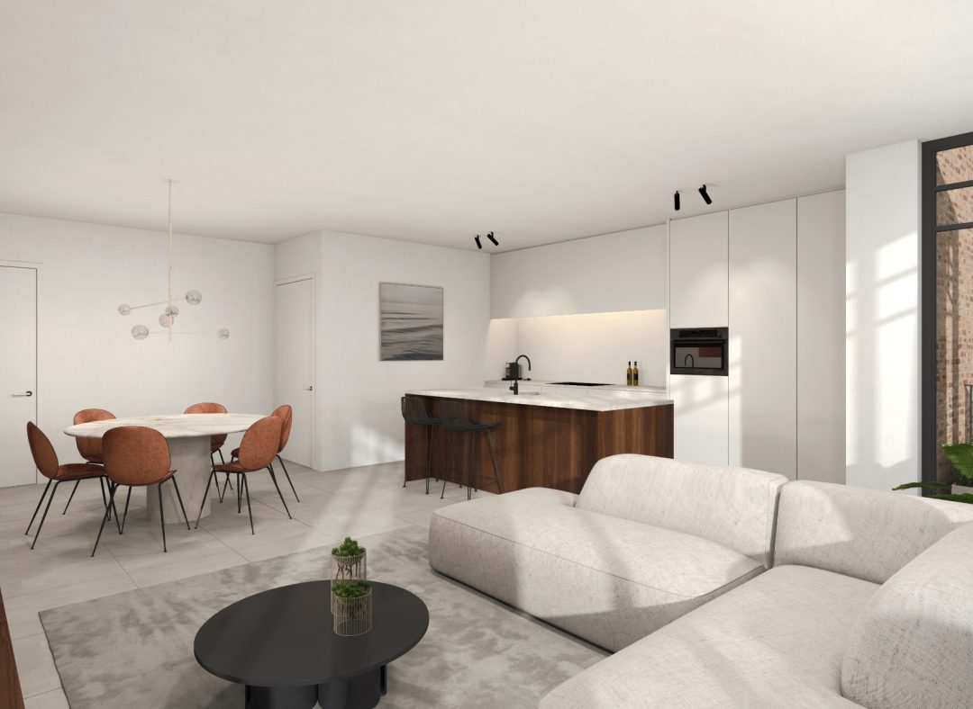 Residentie ‘het zonnig hoekje’ beschikt over 12 ruime appartementen met 1 of 2 slaapkamers en een totale oppervlakte van 78 m² tot 118 m². Daarnaast beschikt elk appartement ook over 1 of meerdere zongerichte terrassen van 7 m² tot 19 m². Verder heeft u momenteel nog vrije keuze in de afwerking van de keuken, badkamer en de vloer van uw appartement. Het lastenboek voorziet ruime mogelijkheden voor de koper om zijn eigen accent te leggen in de verdere afwerking. (ruime budgetten voorzien voor verdere afwerking – op te vragen bij makelaar)