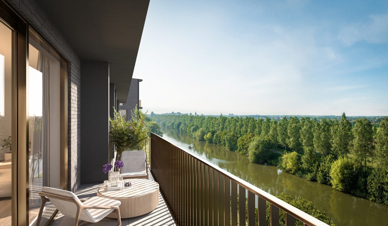 Je woont er in het centrum van Astene, een pittoresk dorp in Deinze, met zicht op zowel de Leie als het achterliggend groen natuurgebied.